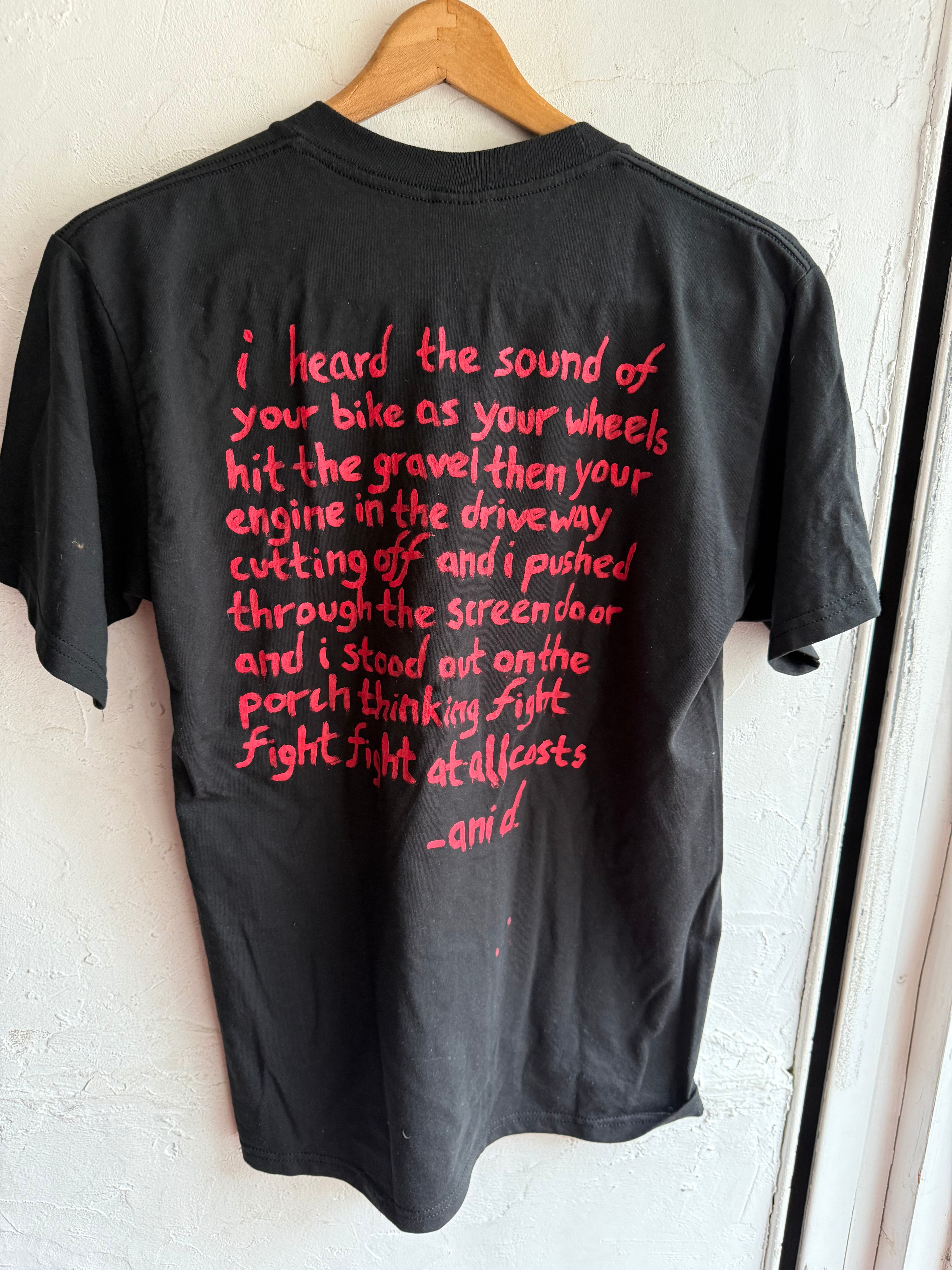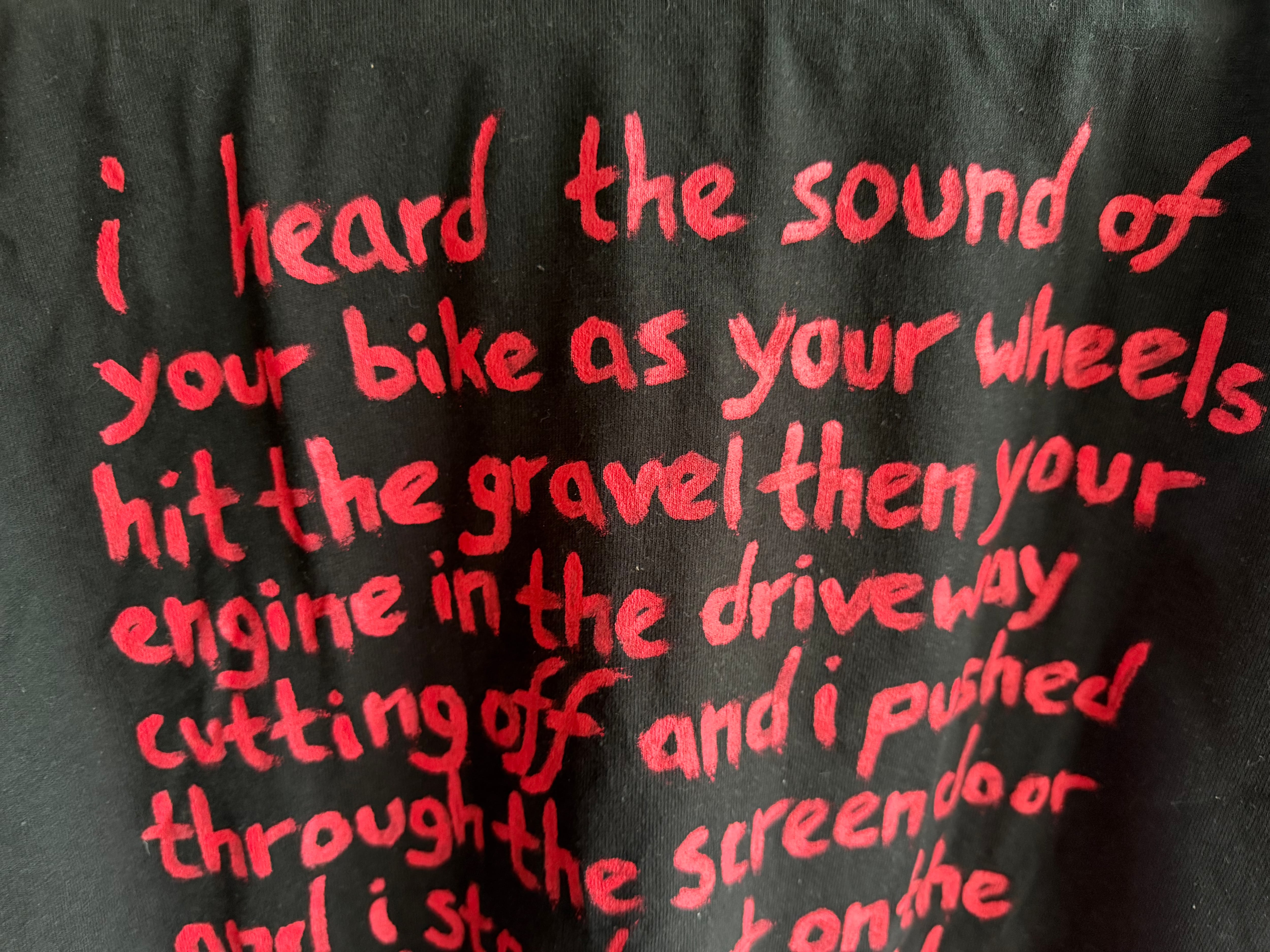 手描きでアディダスみたいなマークと背中に詩が描かれたTシャツ