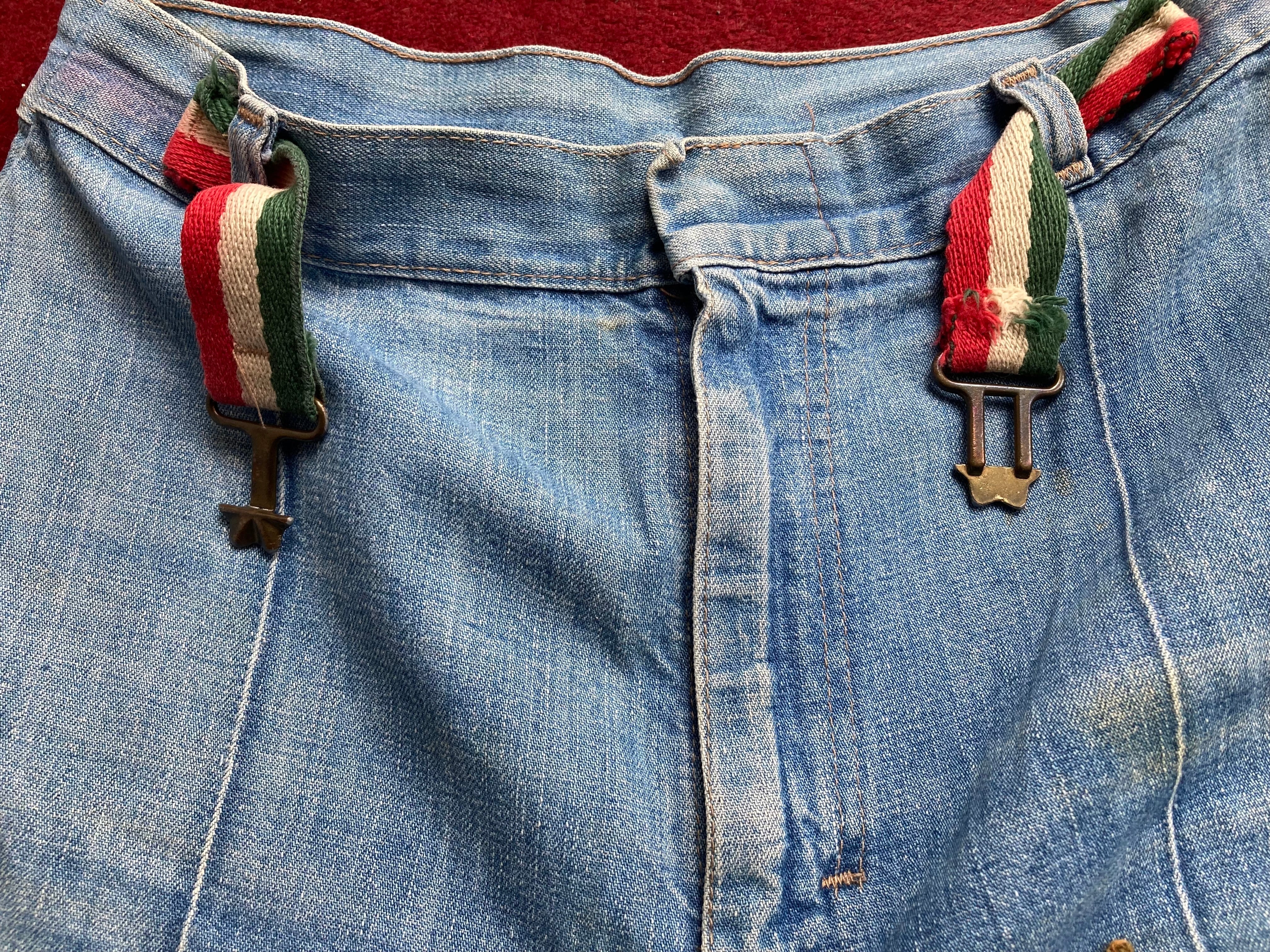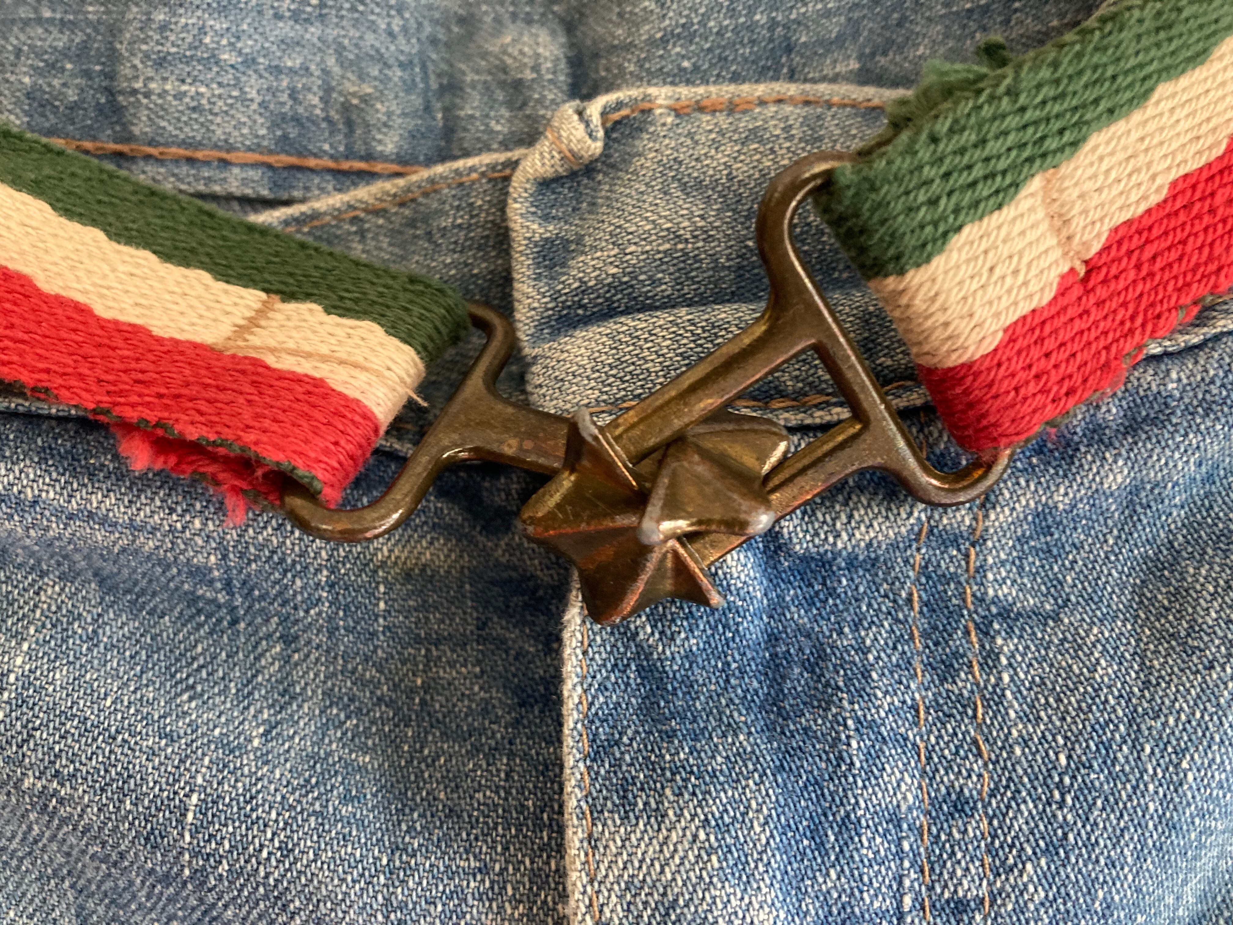 腰の金具が大変かっこいいパンツで色落ちもビンテージならではの色になっています