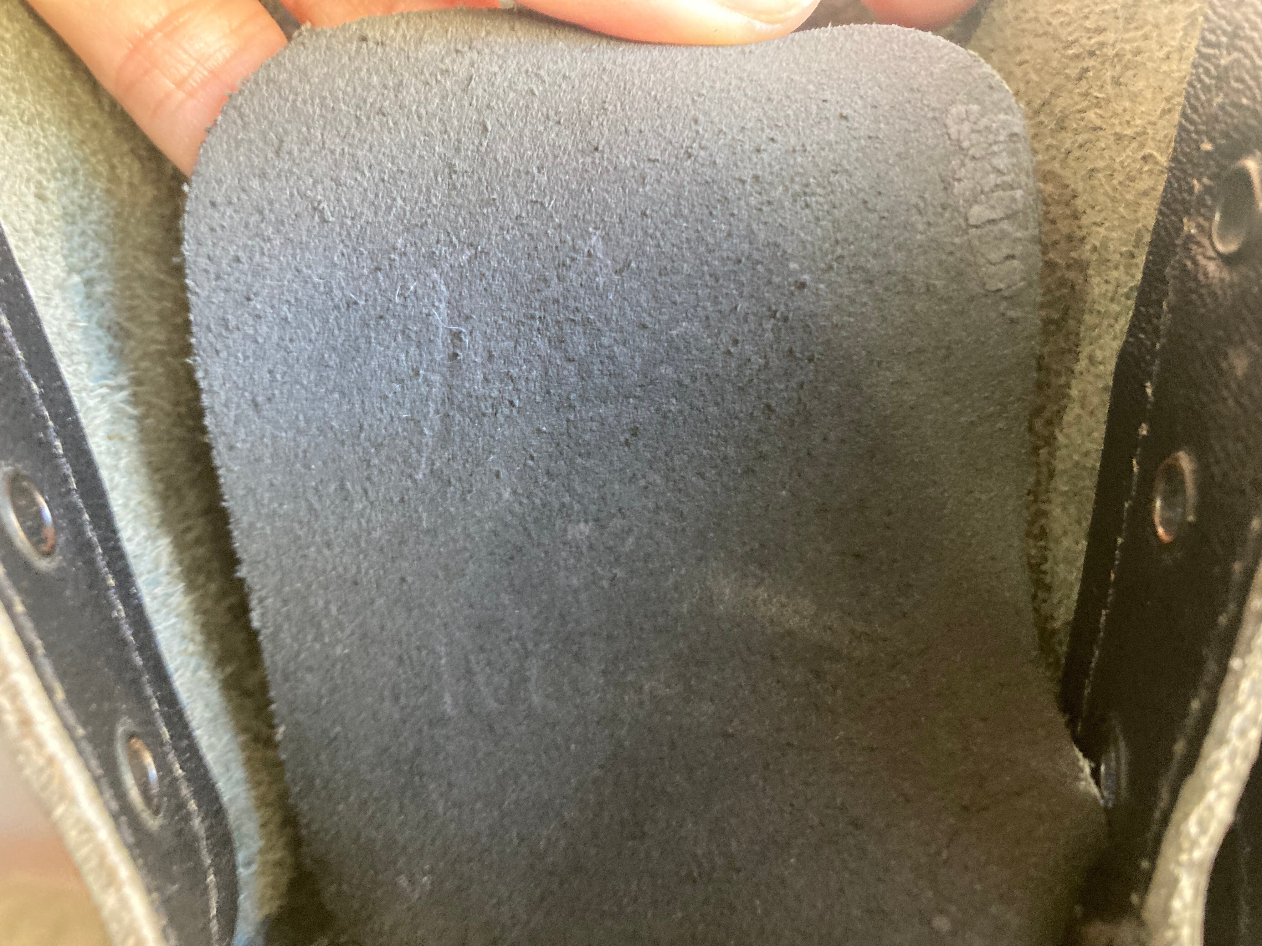 保存が悪かったのかベロの内側部分のレザーが劣化していていたため劣化した部分を取り除いてありますがまだ少しだけ黒い粉が出てきます