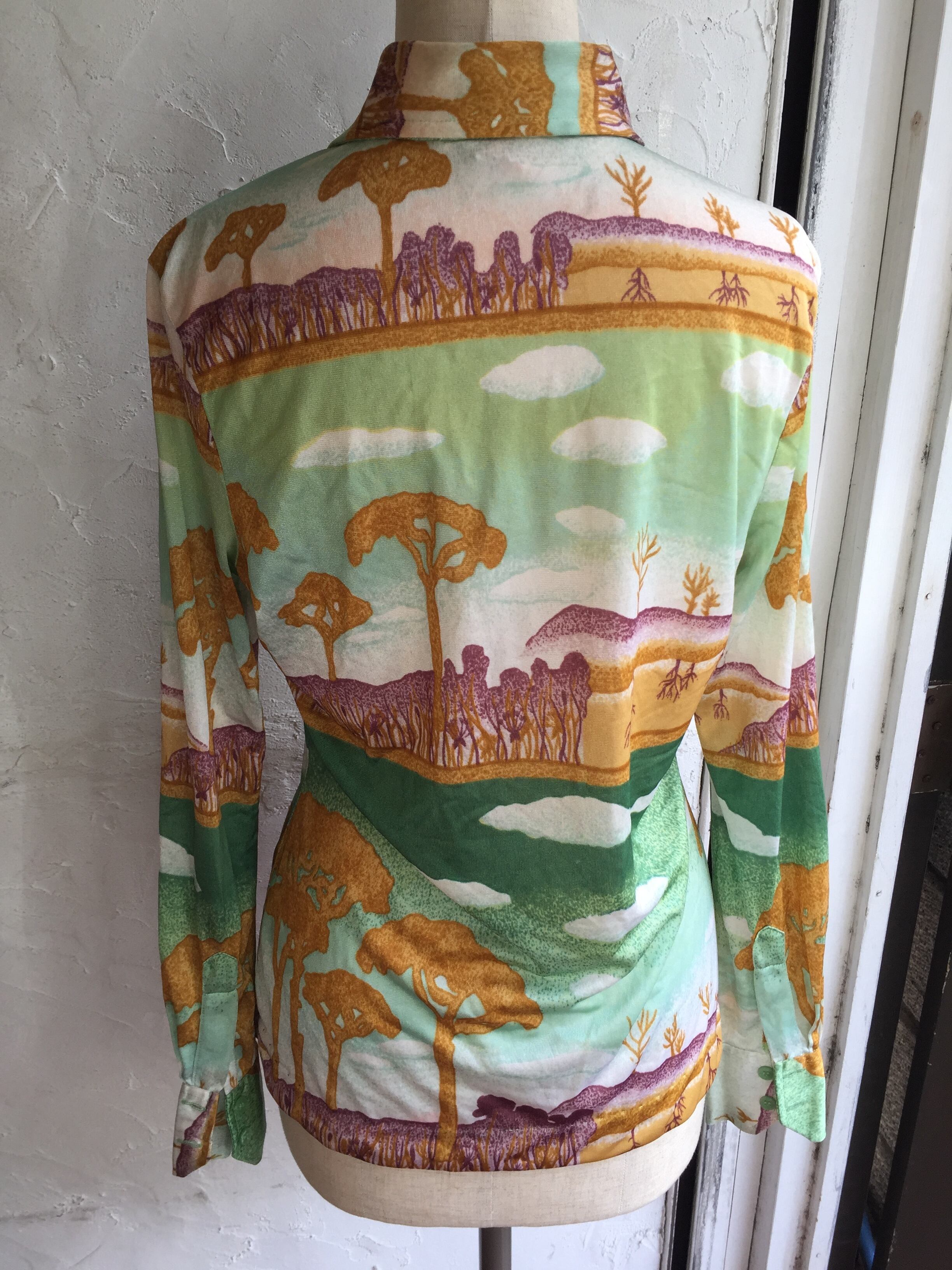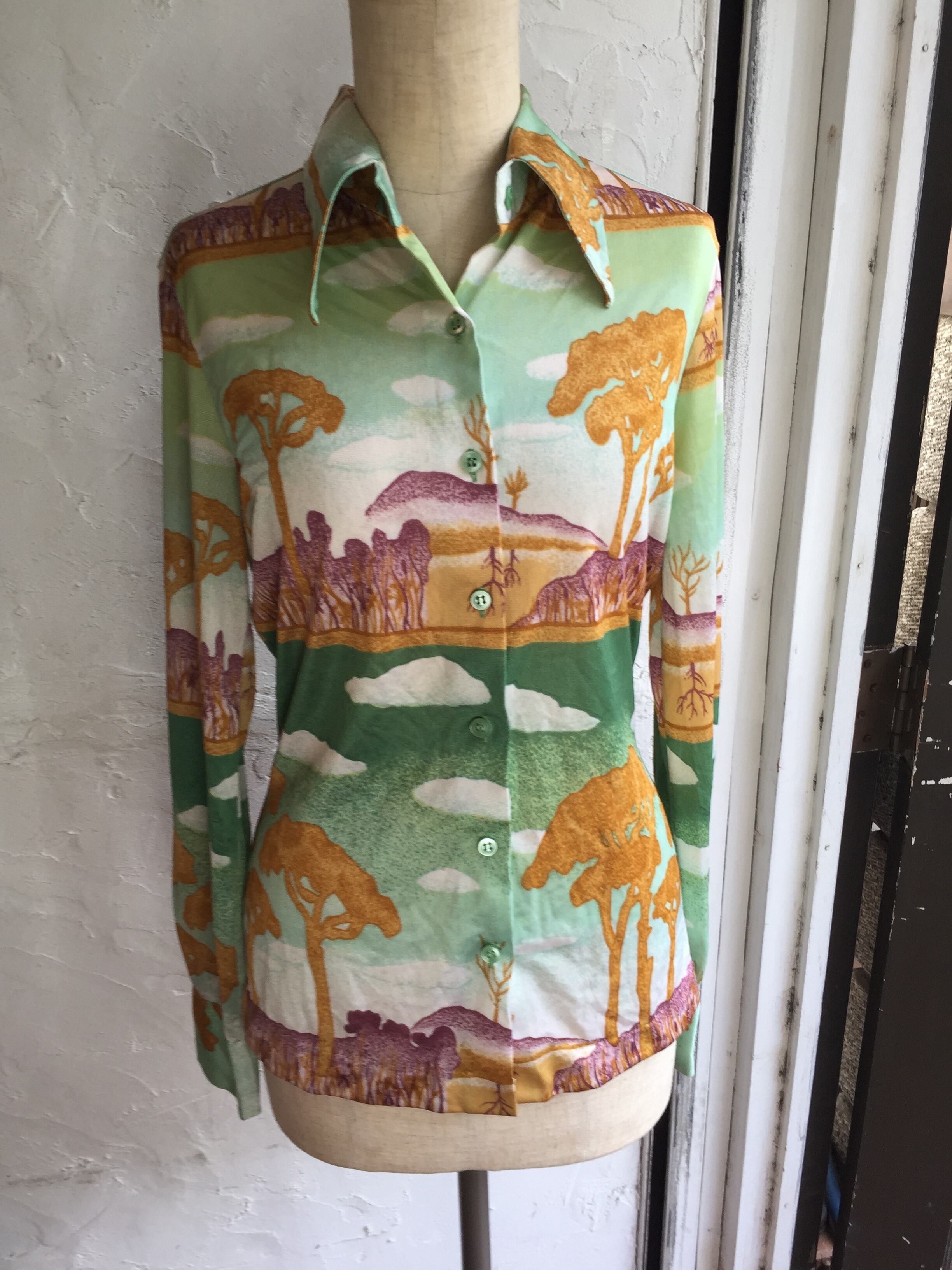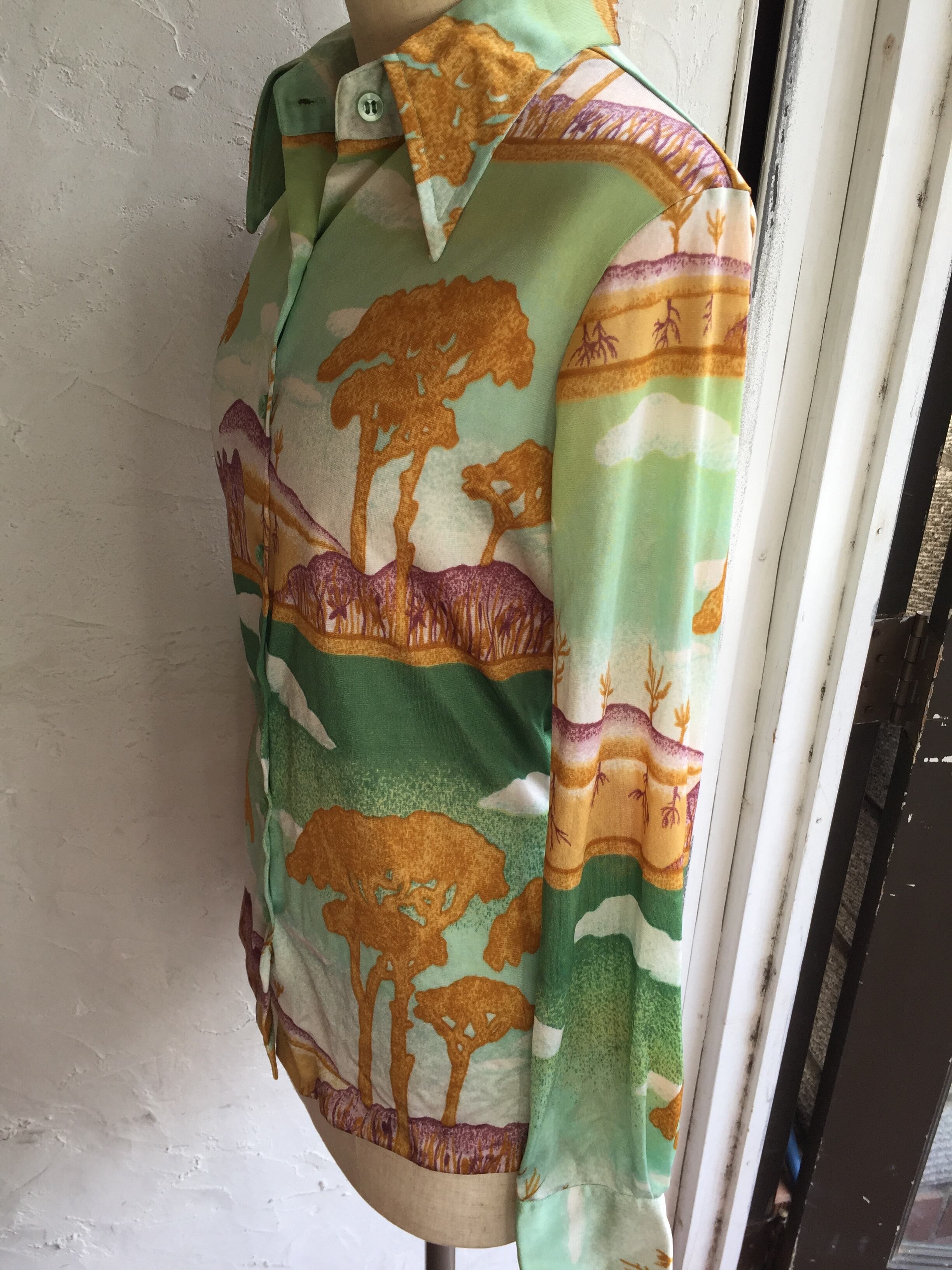 70年代くらいの柄の綺麗なポリシャツになります