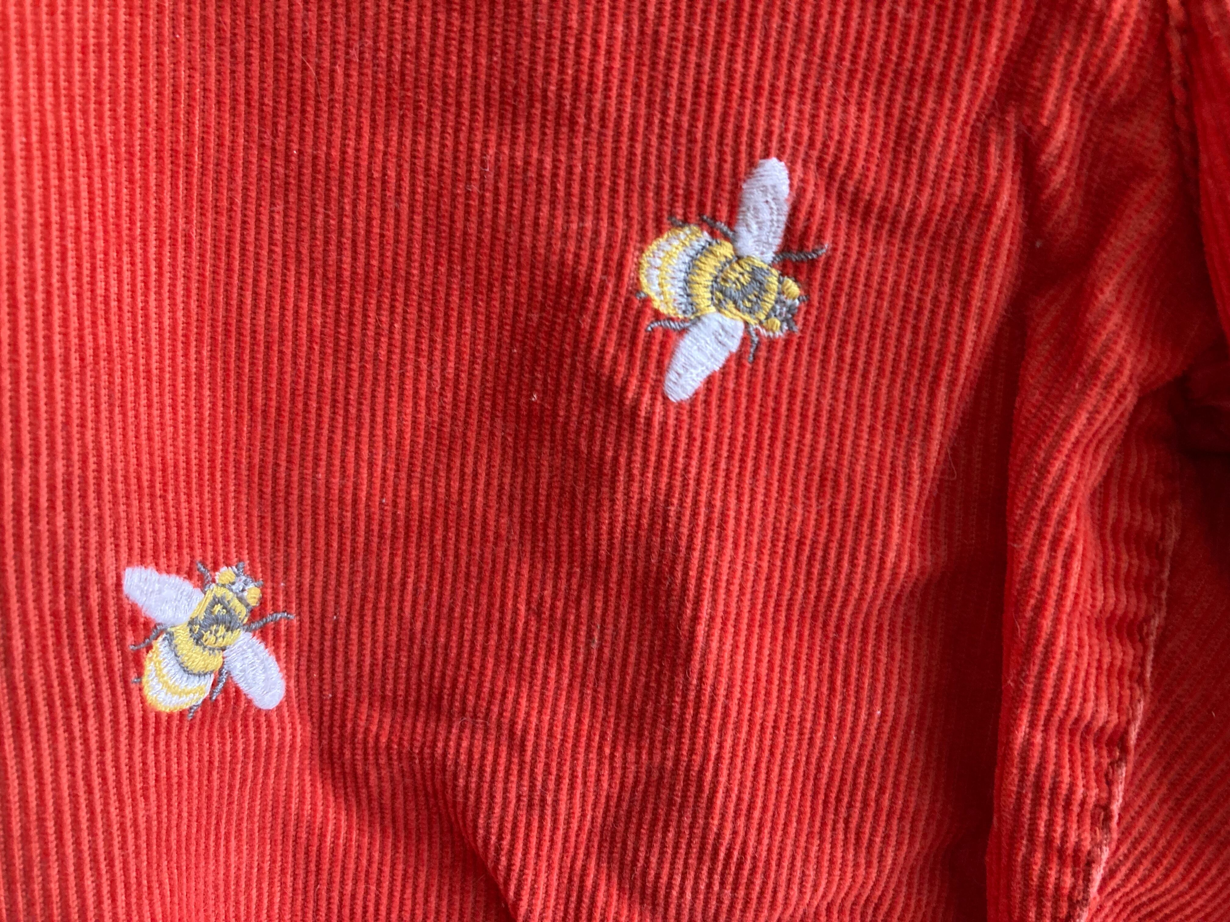 シルエットはフレアでミツバチの刺繍が全体に入ります