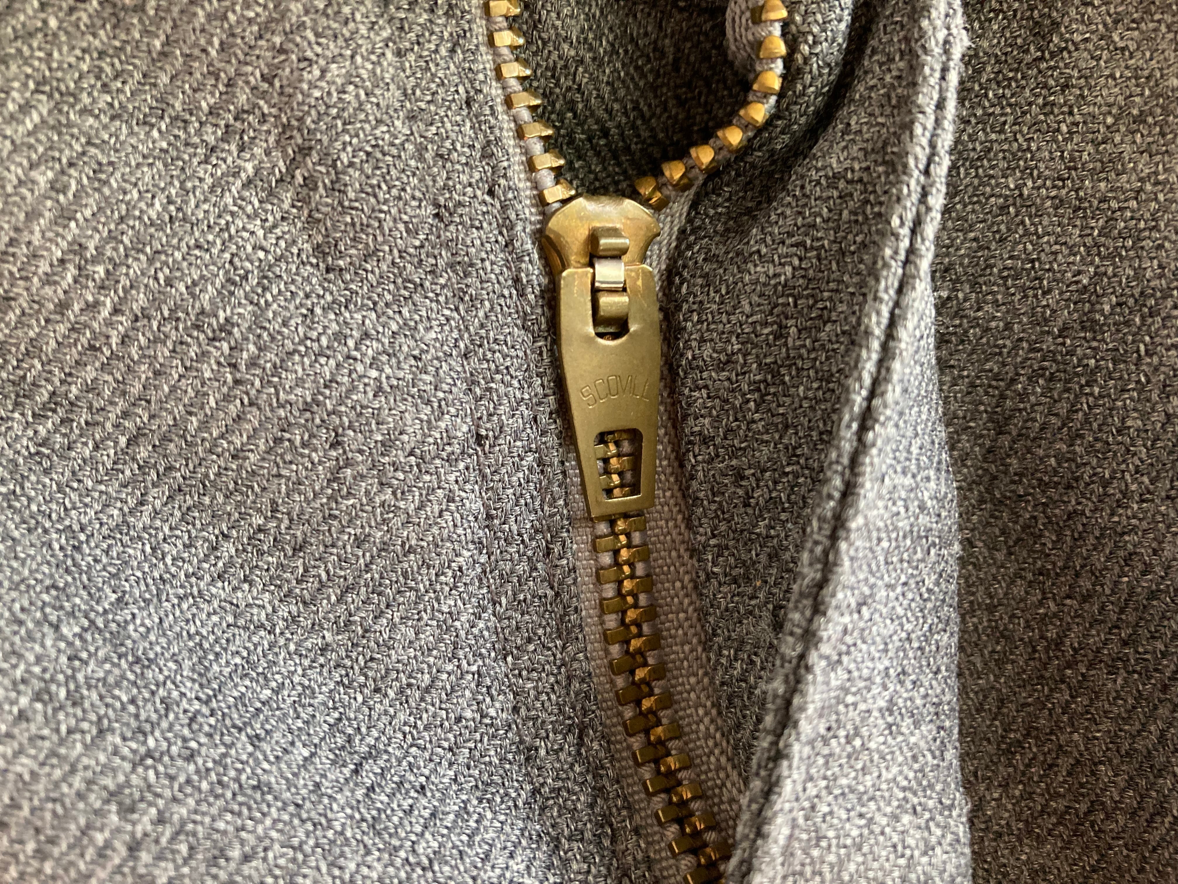 色はグレー ジッパーはスコービル
