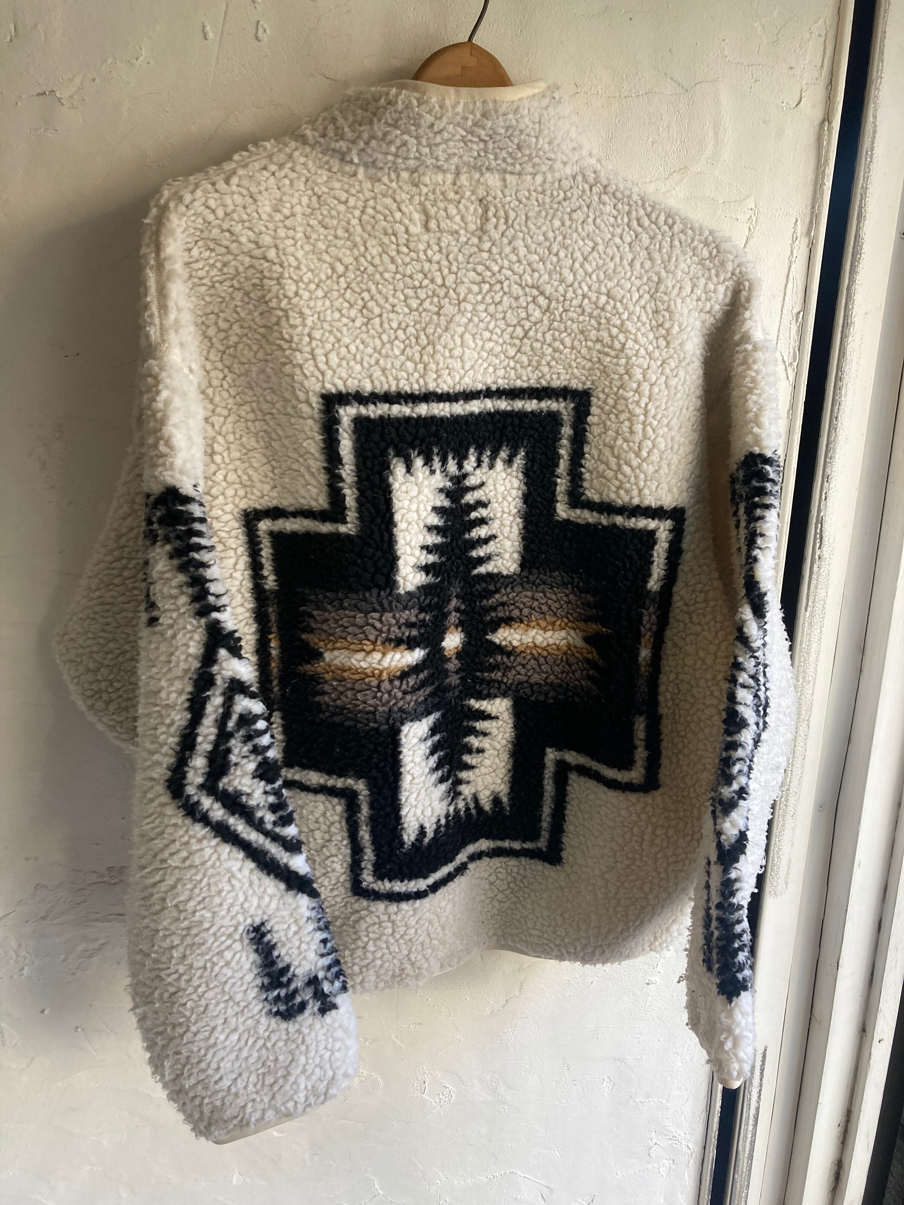 オフホワイトにネイティブ柄ですがモノトーンなのでそこまで派手な印象のない丁度いい感じです