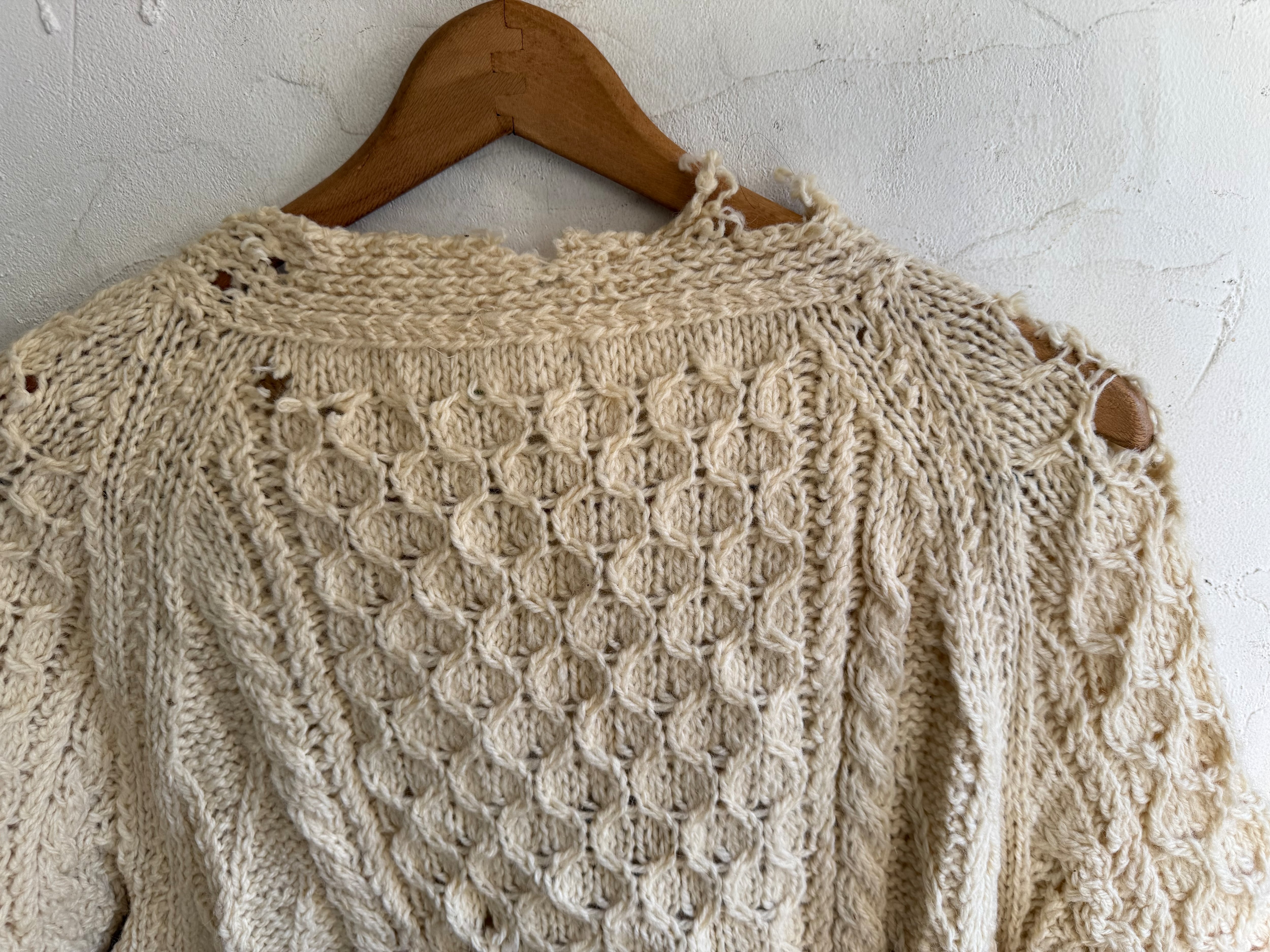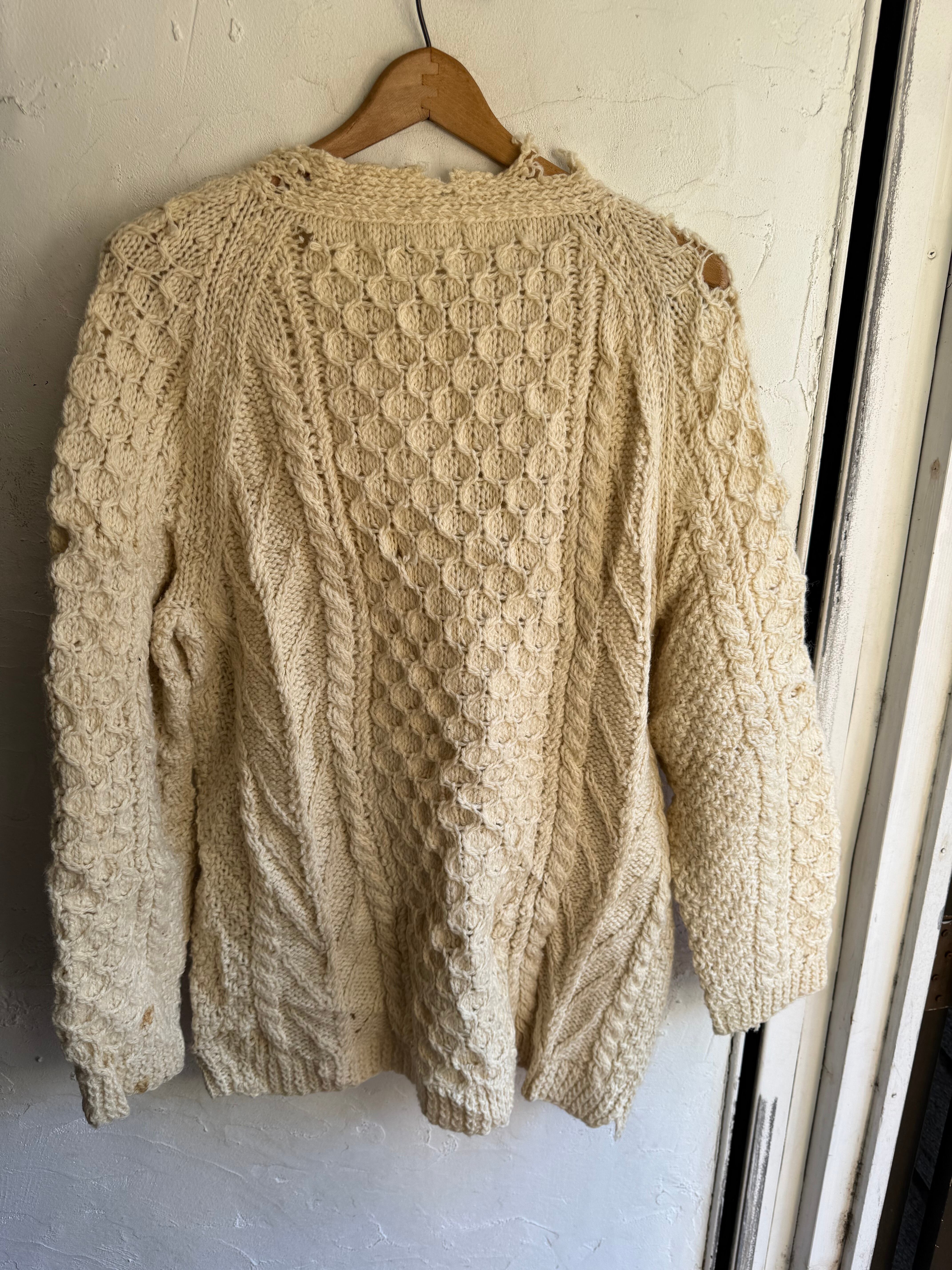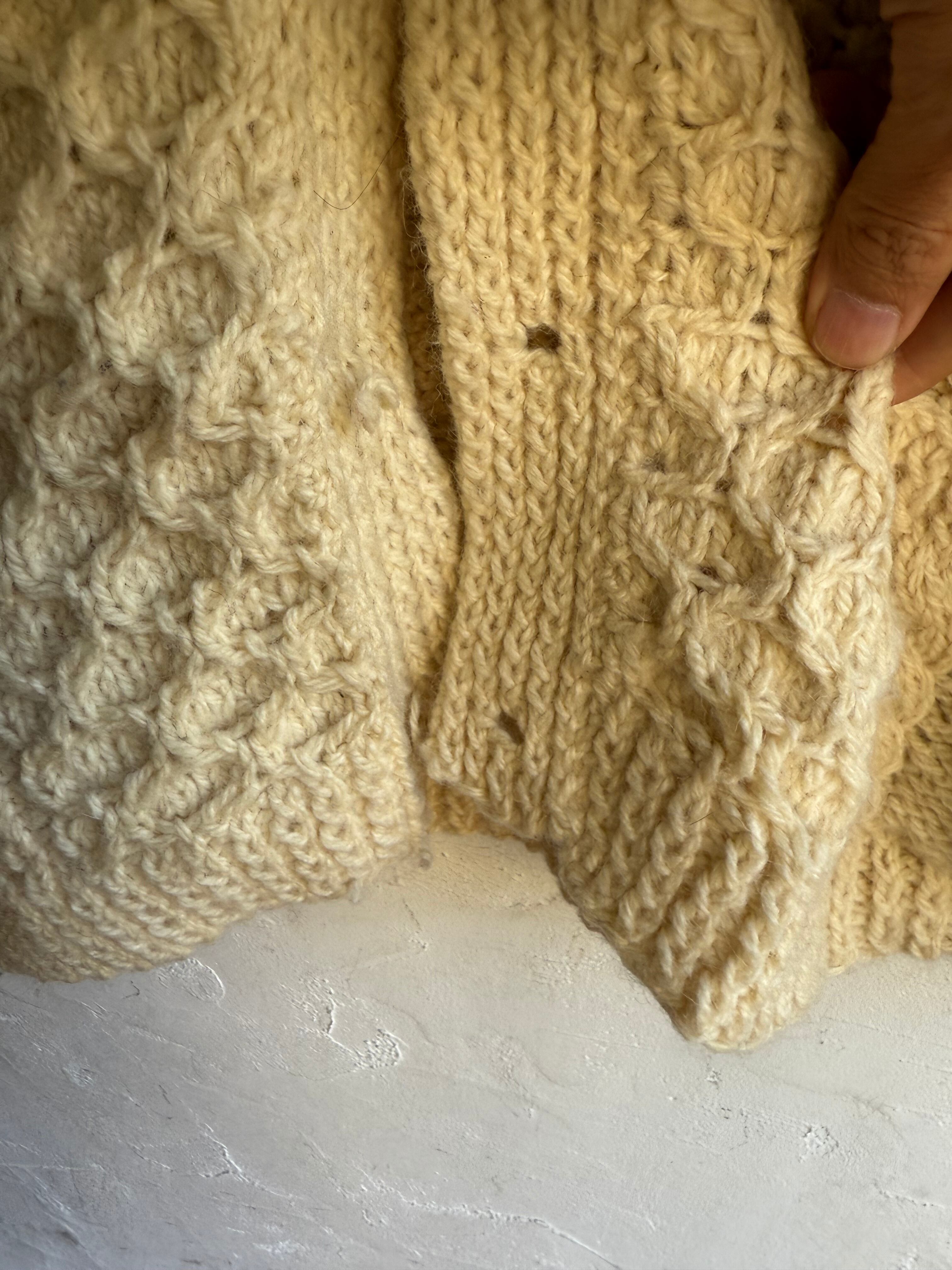 ダメージ入りのアランニットカーディガンになります。