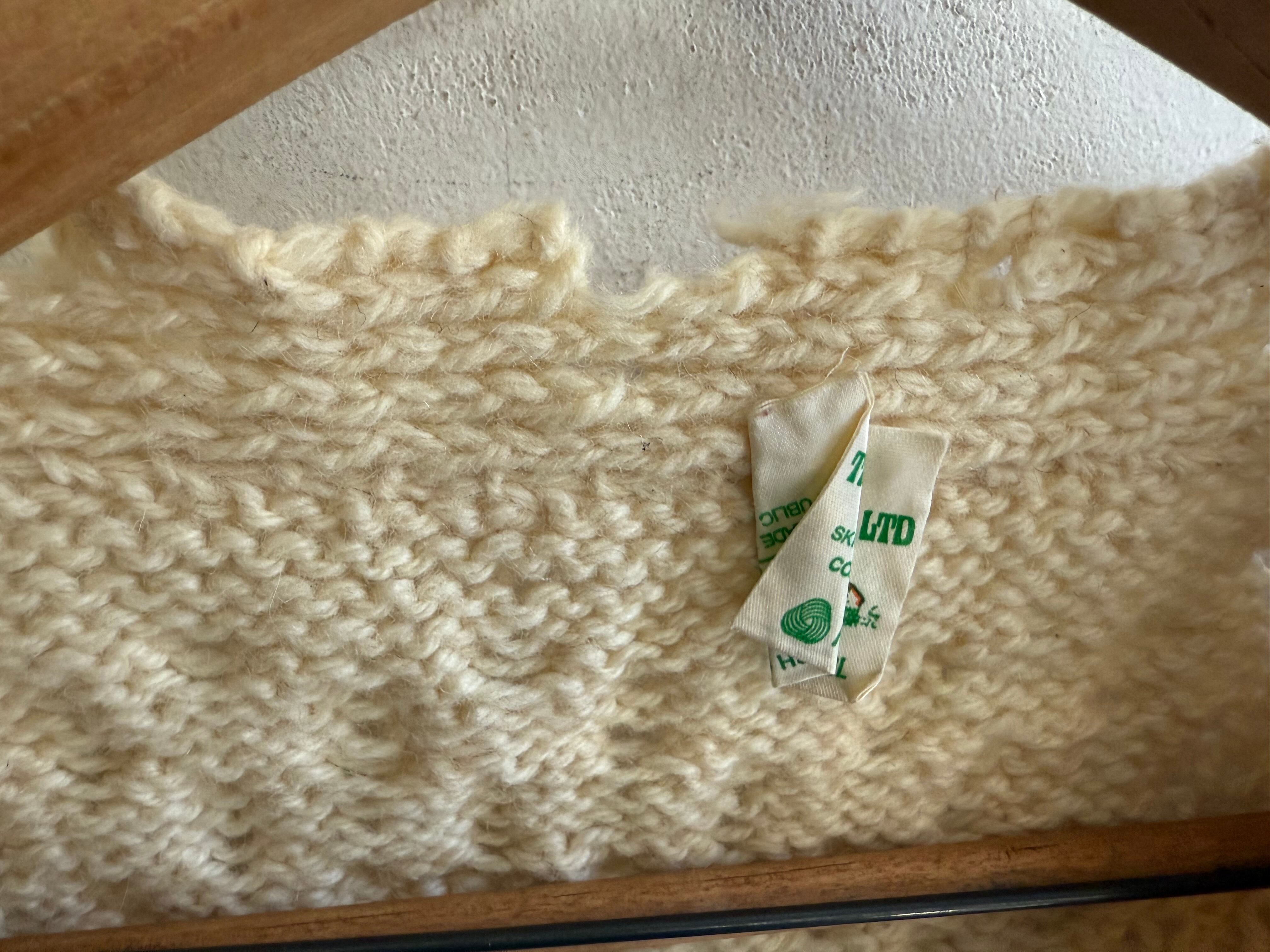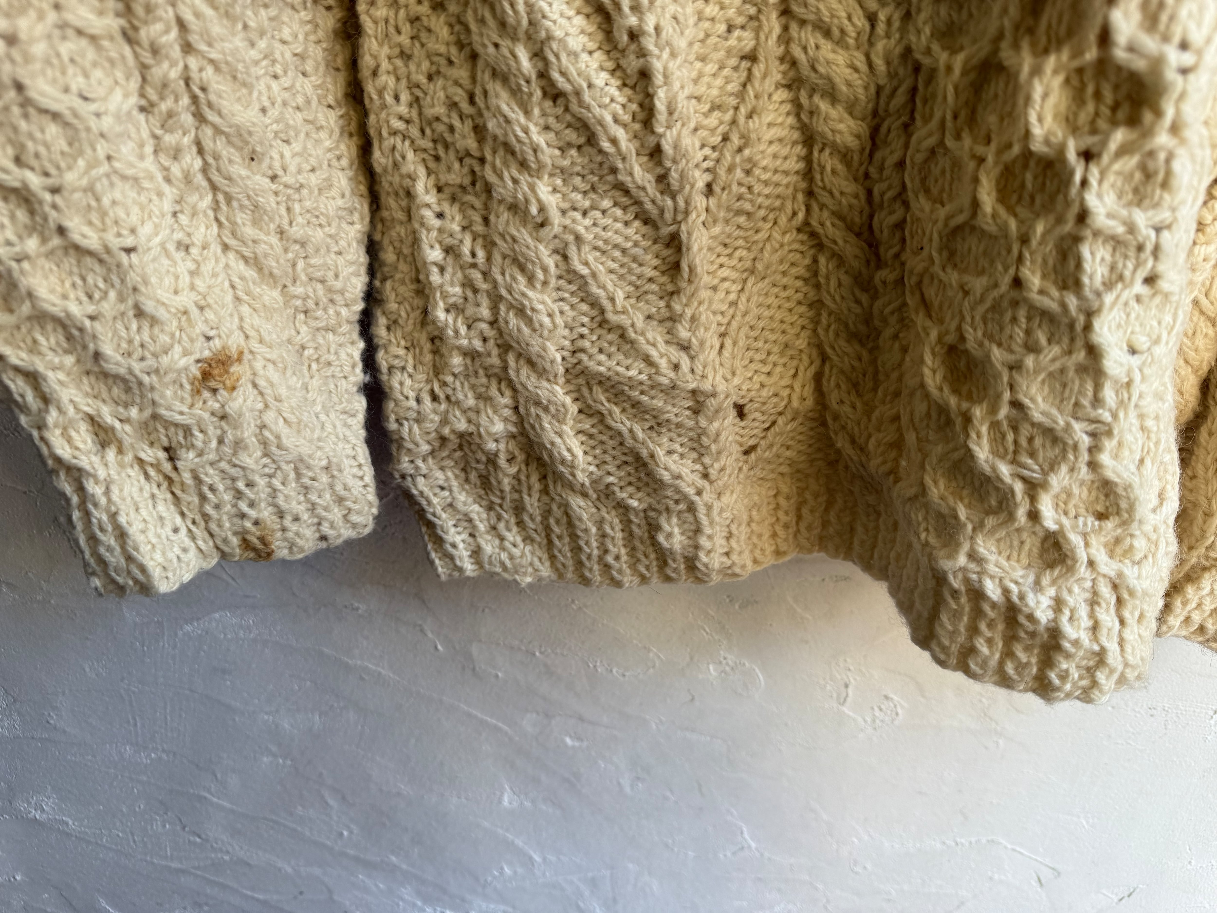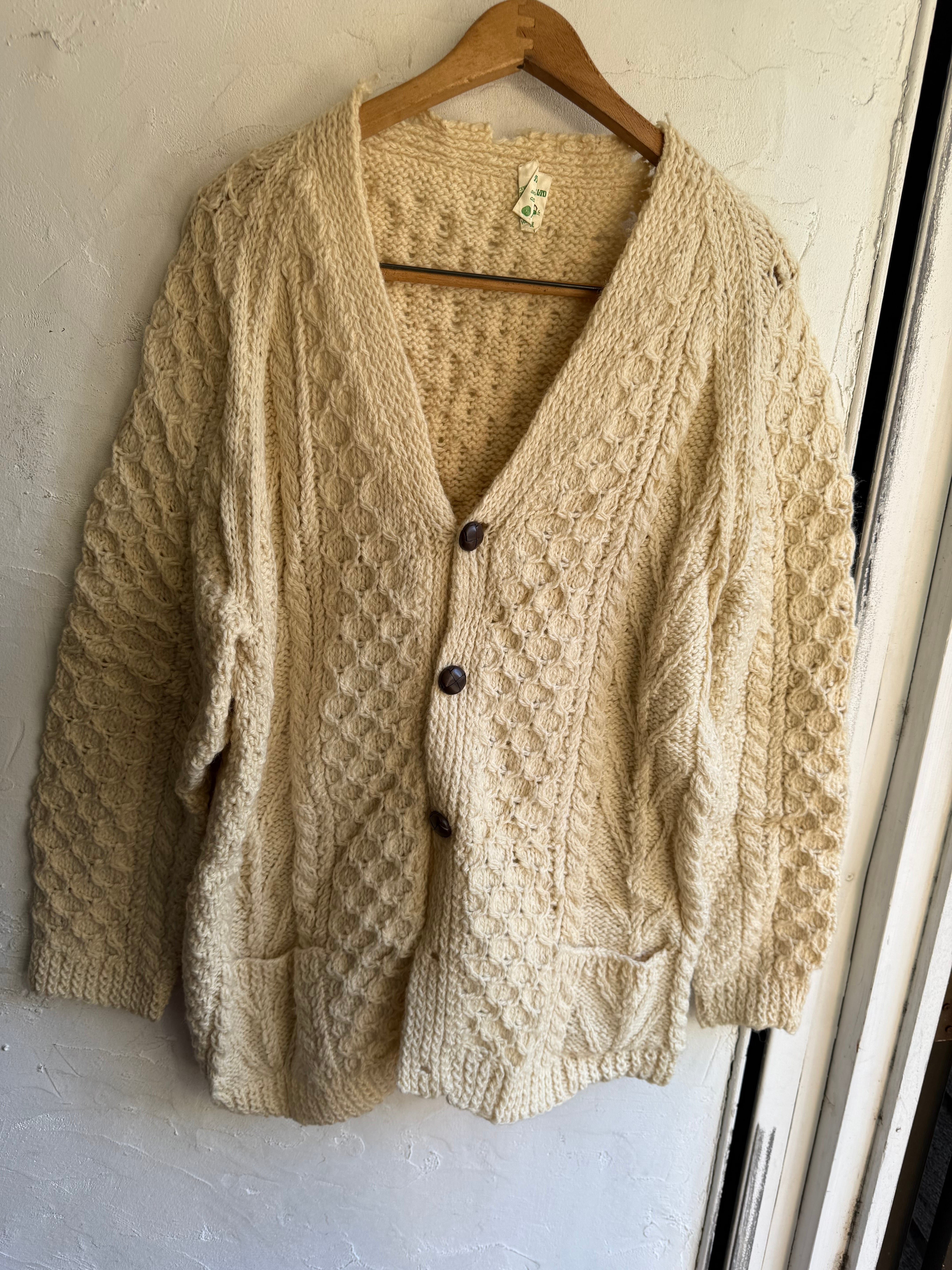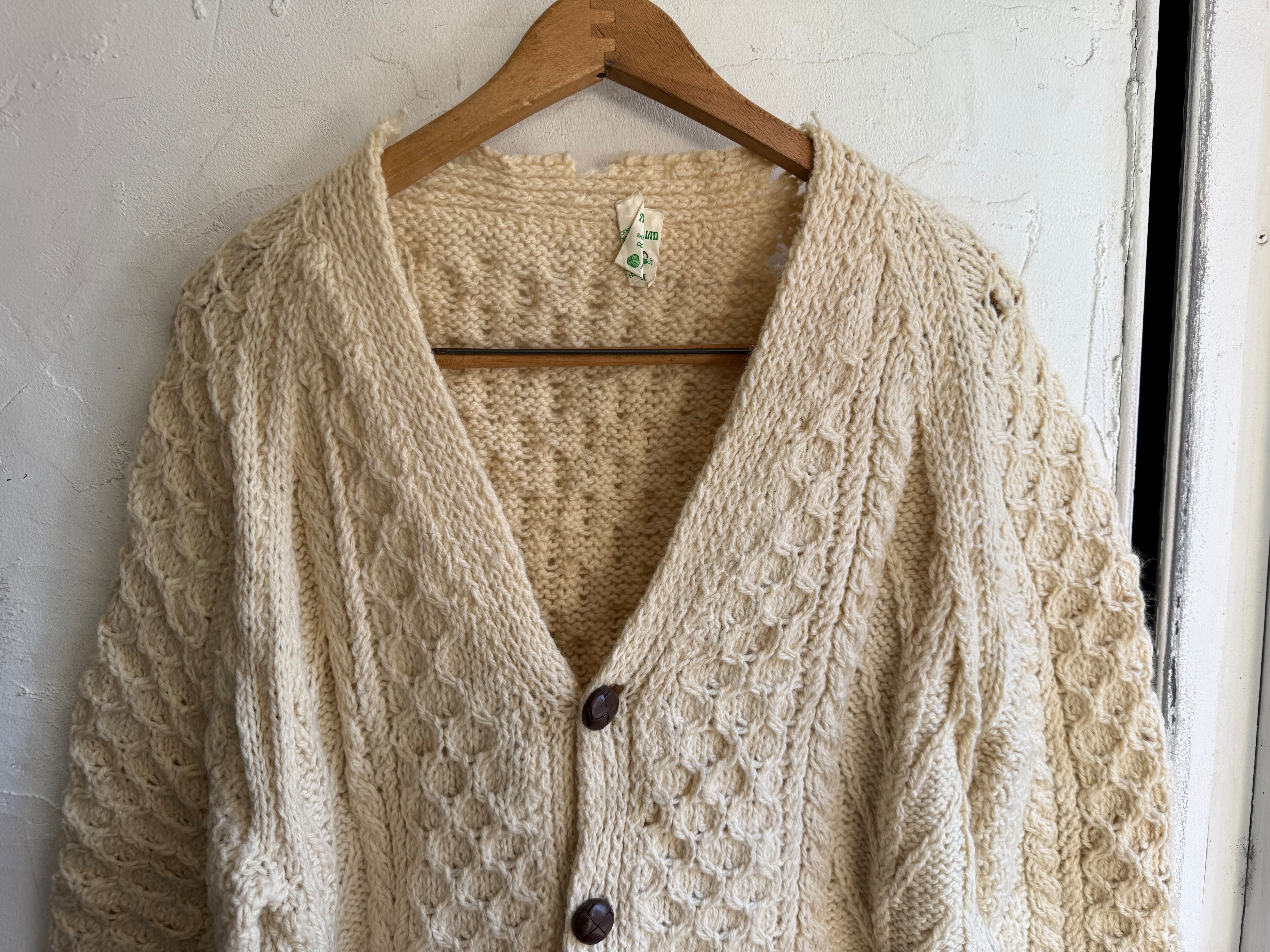 ダメージ入りのアランニットカーディガンになります。
