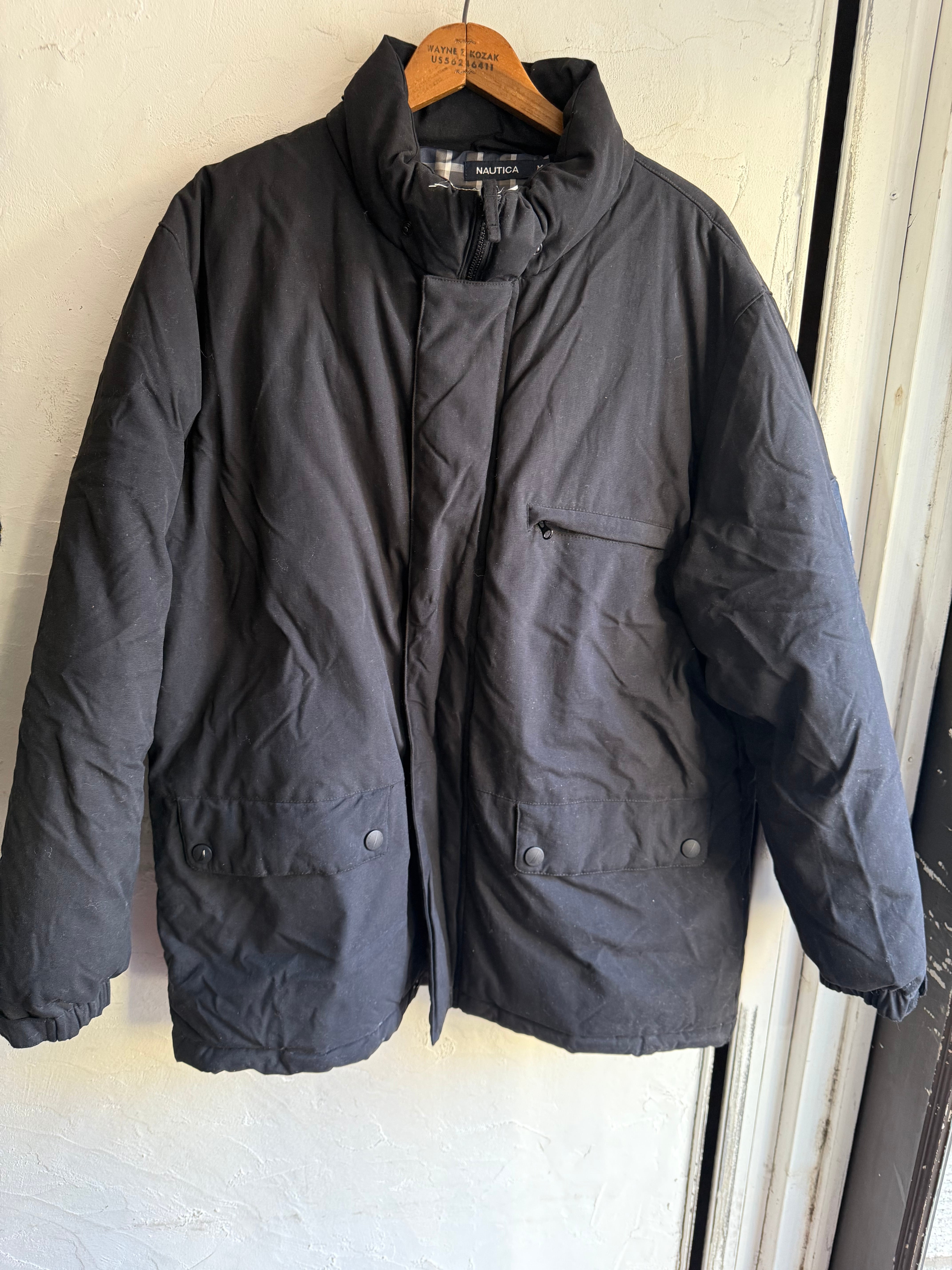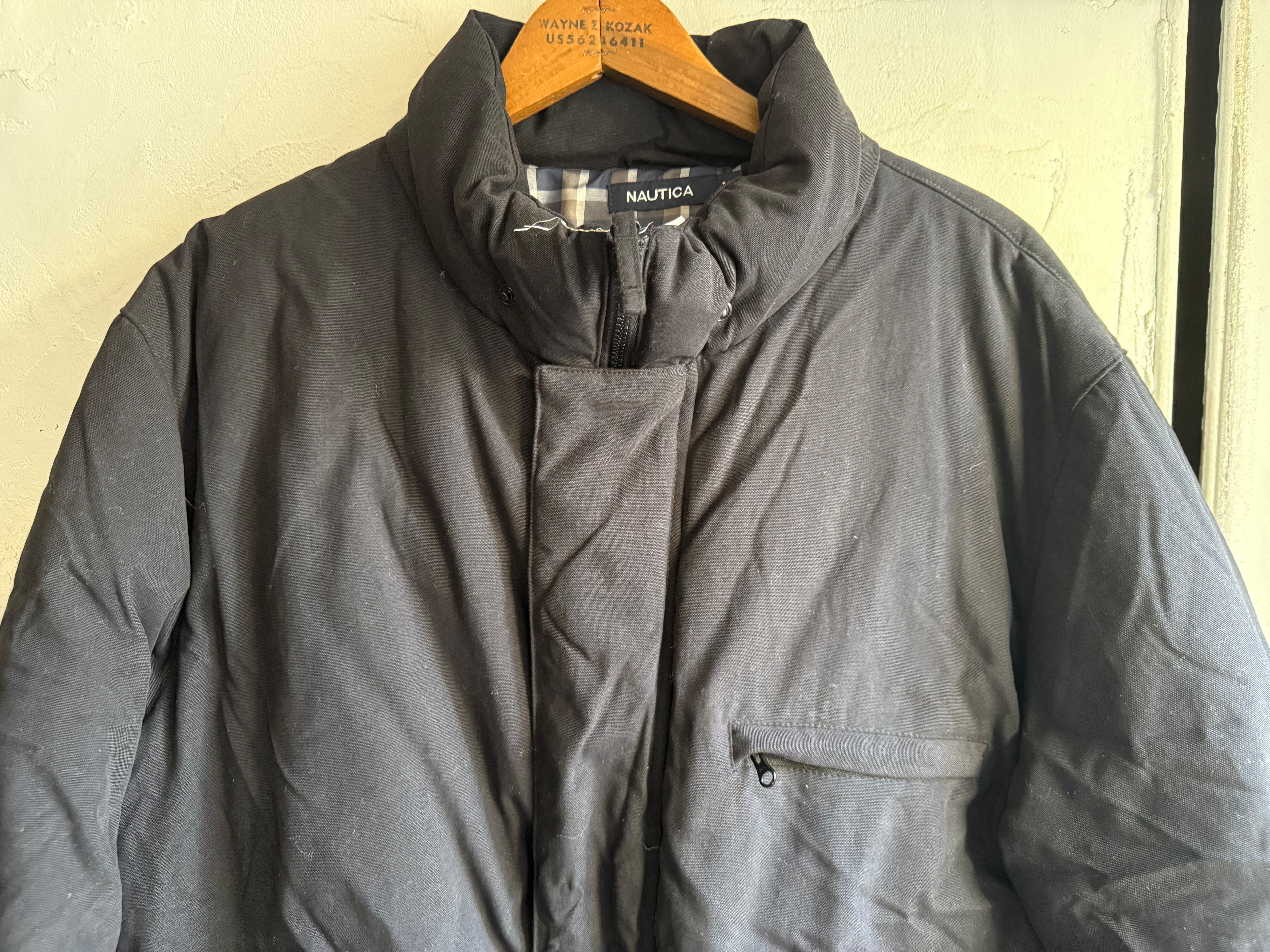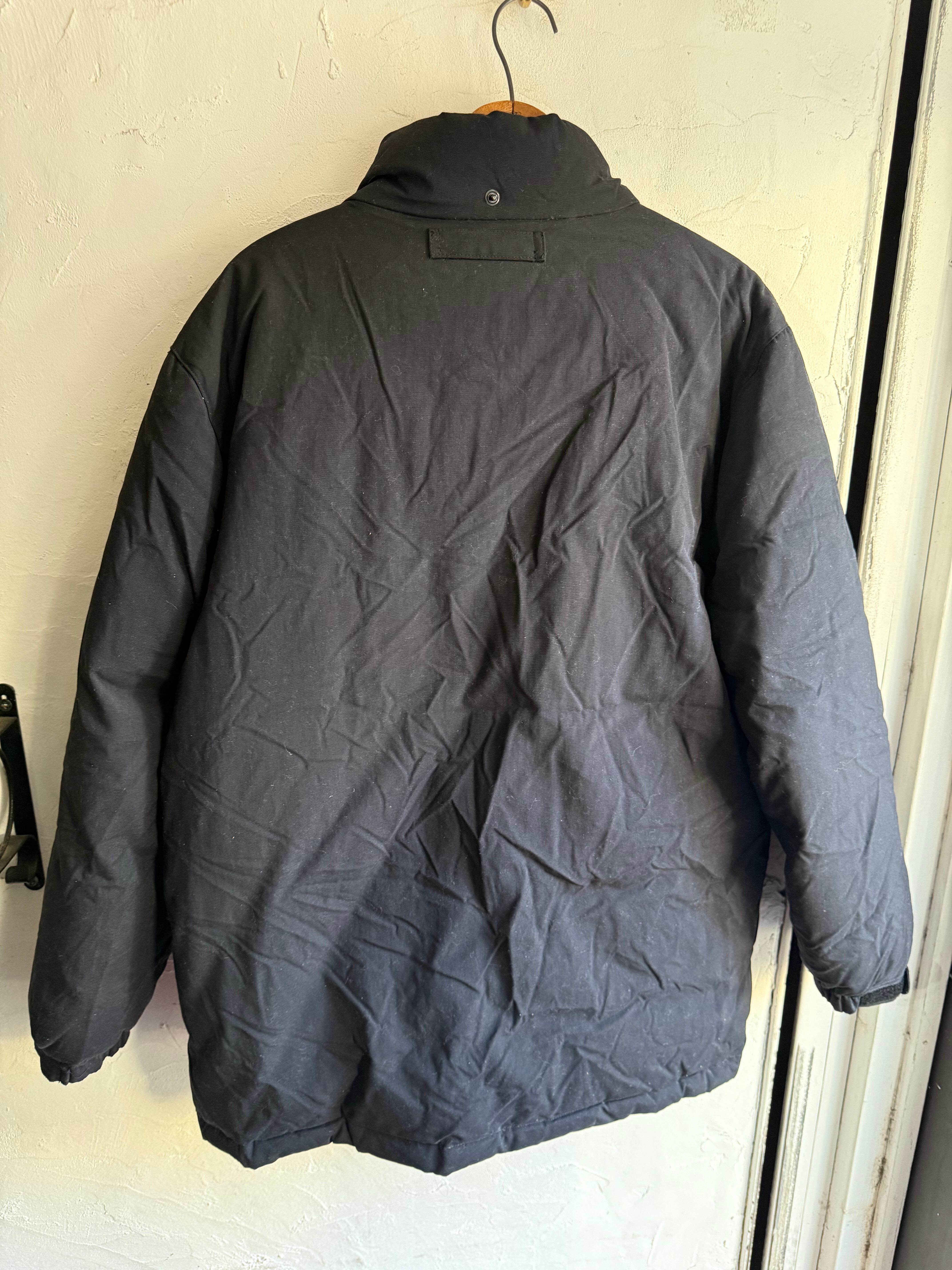 スタンドカラーのブラックダウンジャケット